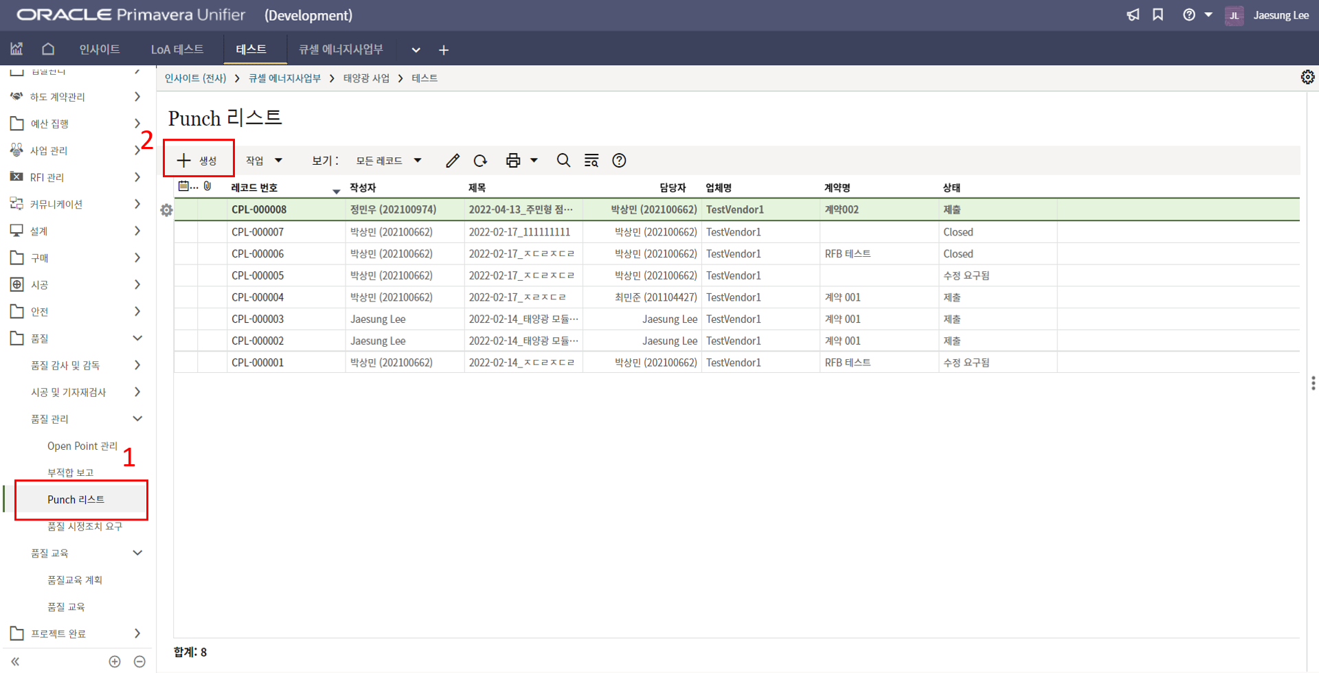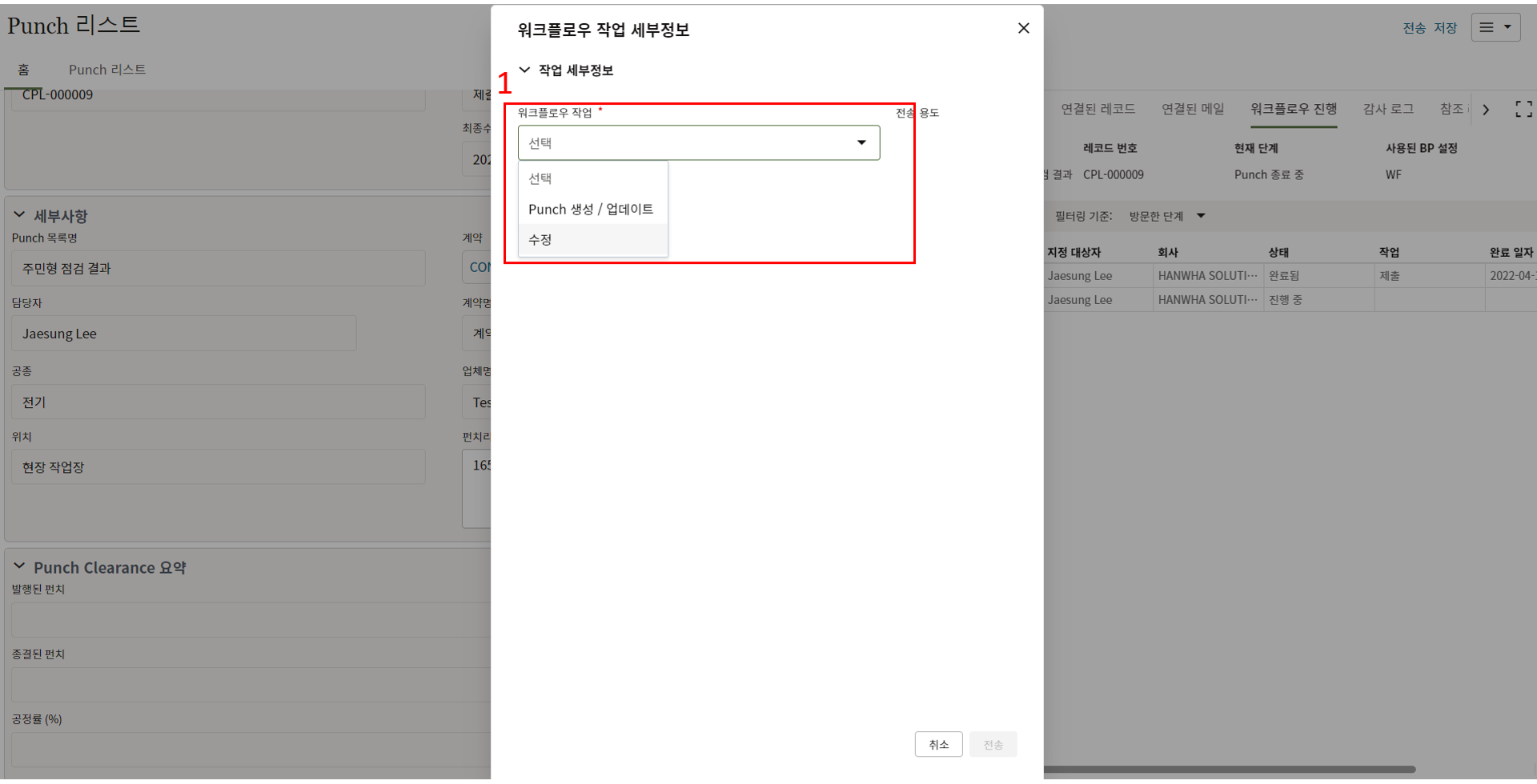 1. 한화솔루션 시공팀에서 협력업체를 지정하여 펀치리스트를 발행하면,