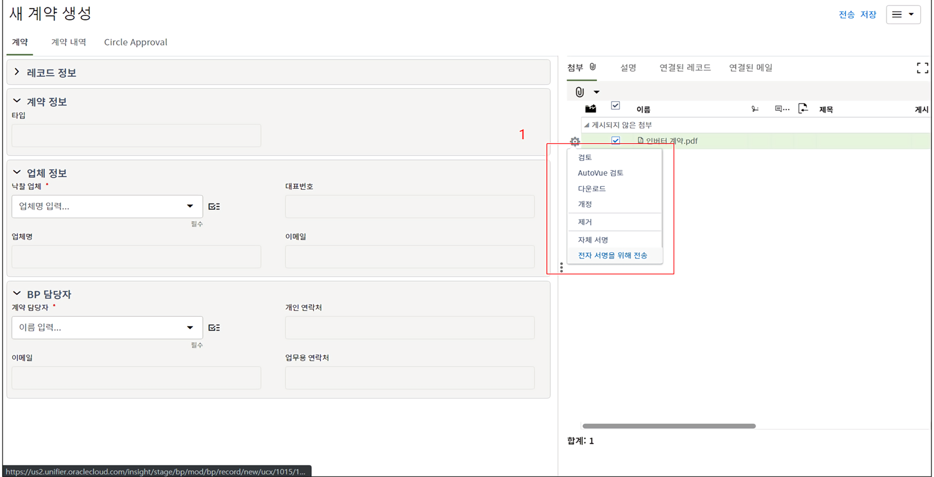5분 간격으로 Circle 전자결재와 연동이 되므로 전송버튼 클릭 후 최대 5분 뒤 전자결재가 상신, 업데이트 됩니다.